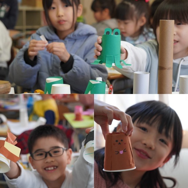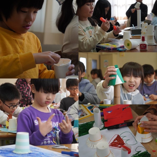 紙コップと輪ゴムで飛びだす工作です。