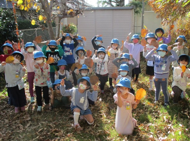 学校の外では、校務員さんやスクールサポートスタッフさんが、落ち葉拾いを行ってくださいました。