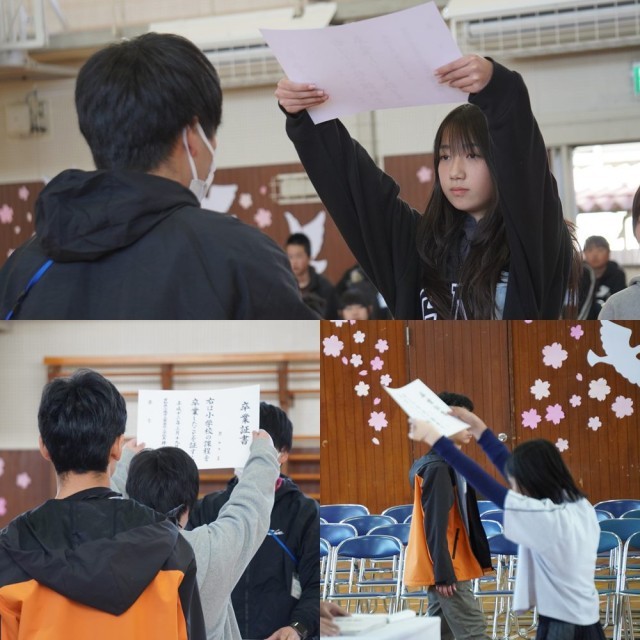 今日は体育館で卒業証書授与の練習を行っていました。