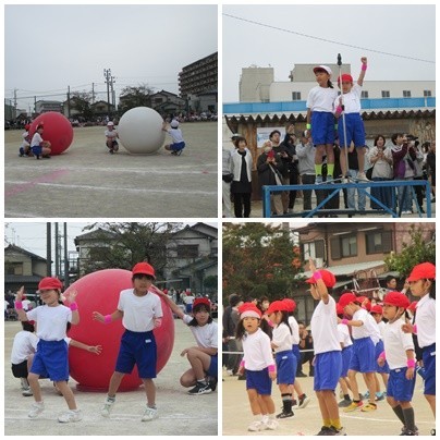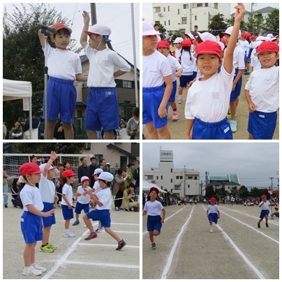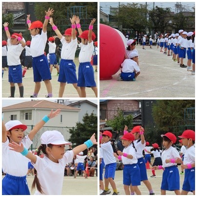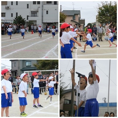 「ダンシング大玉転がし」では、指先までピンピン!笑顔でダンスができました。大玉転がしは、今日も大盛り上がりでしたね。「1・2のサンでかけぬけろ」では、どの子も全力で最後まで走りぬきました。みんなが大活躍できた運動会になりました。