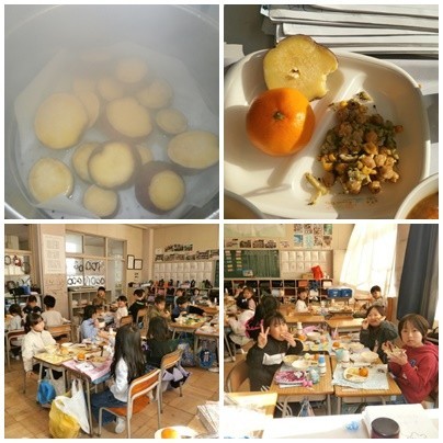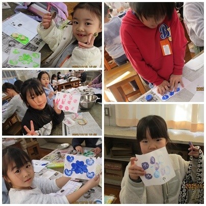 生活科で育てたさつまいもを使って、「いもはん」を作りました。自分の名前の一文字をほったり、型取りをして、絵の具ではんこにしました。今週の初めから、この時間をとても楽しみにしていた子どもたち。夢中で取り組んでいました。肥田先生と、図工室でみんながいもはんを作っている間に、伊藤先生は調理室でふかしいもを作りました。給食の時間に、一人一つ、輪切りにしたふかしいもを食べました。ほくほくしたおいも、美味しかったですね。給食のカレーライスと一緒においもを食べ、今日はお腹パンパンの、給食時間となりました。