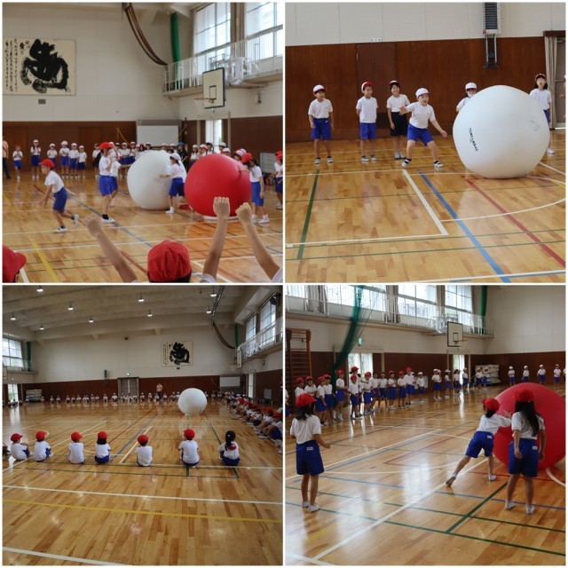 今日は、1年生と一緒にダンスと大玉転がしの流れを確認しました。