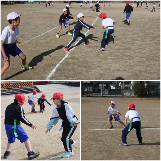 2年生の体育ではおにあそびに取り組んでいます。今日は、「ふやしおに」や「まほうおに」で見つけた逃げ切りチャンピオンへのポイント「おにがいないほうへ逃げる」を「しっぽとり」でも発揮するように活動しました。「おにがいないところをねらえばいい」とすきまを見つけて走り抜けることができました。