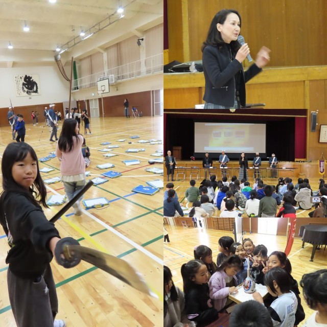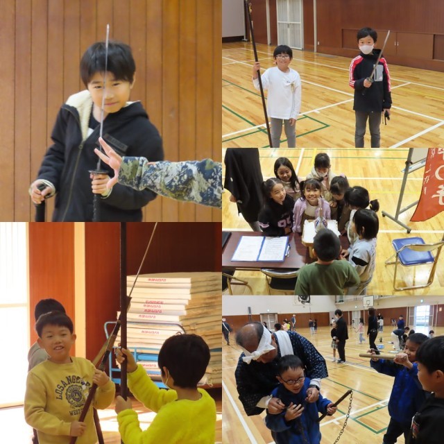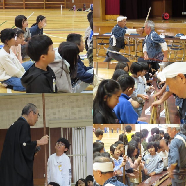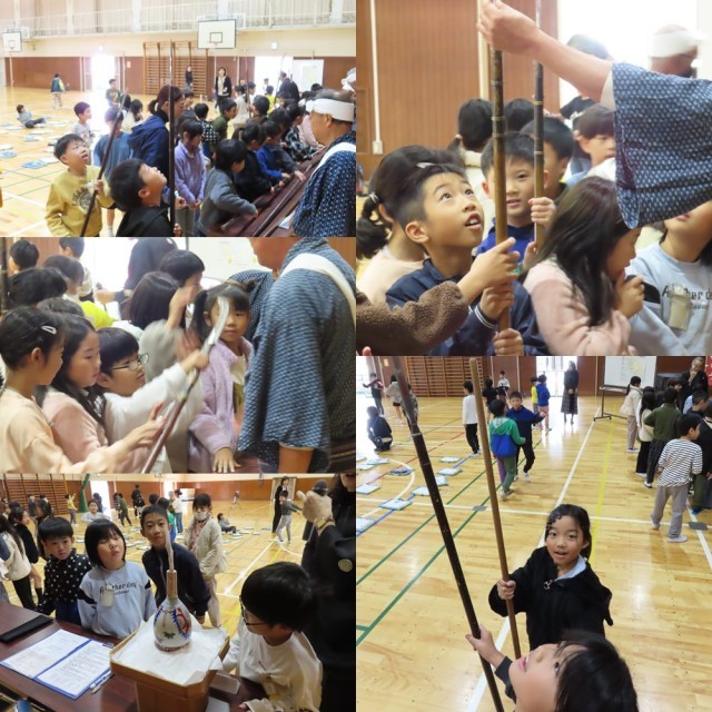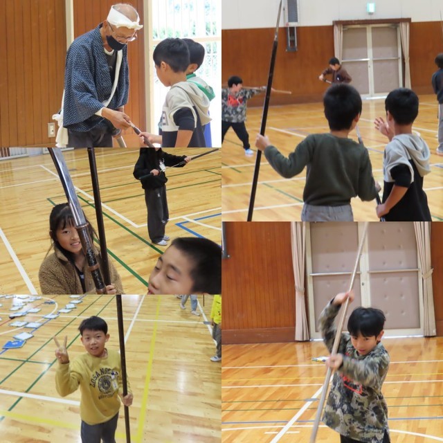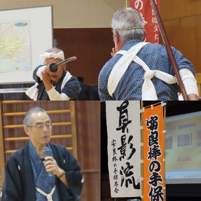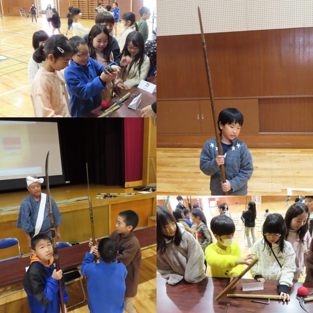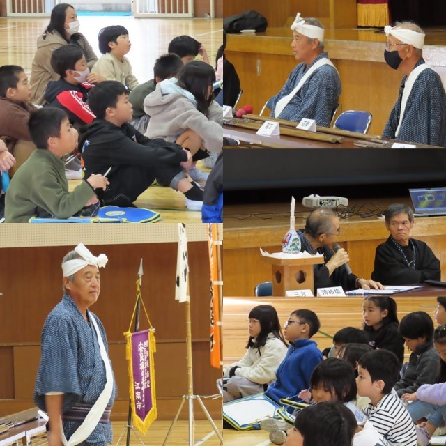 今日は、安良地区の伝統芸能である「棒の手」保存会のみなさんに来ていただき話を聴きました。棒の手がどのようにでき、どうやってこの安良地区に伝わったかなどの歴史も詳しく教えていただきました。子どもたちは終始メモを取り、たくさん質問したり、DVDを見て驚いたり、一生懸命に話を聴く姿が見られました。