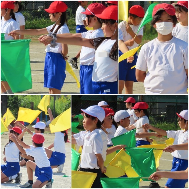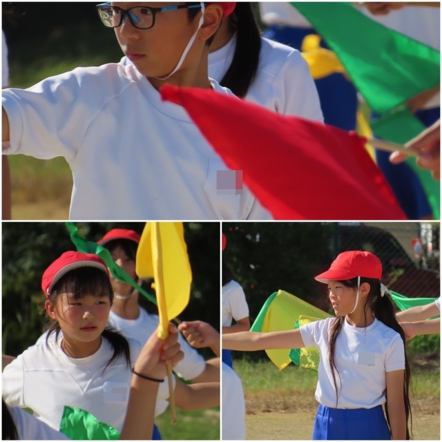 旗を持って大きな動きでかっこよく見せることに気を付けながら頑張っていました。