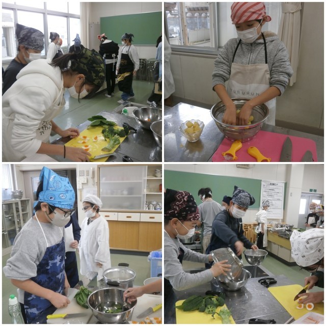 今日は1組で調理実習を行いました。