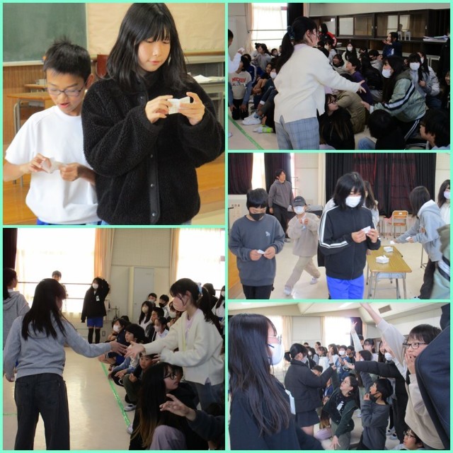 振り返りの後は、学年レクを行いました。今回は「借り人きょうそう」です。