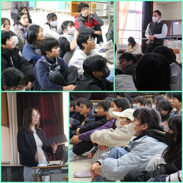 今日は、布袋中学校より2名の先生に来校いただき、中学校生活についてのお話を聴くことができました。