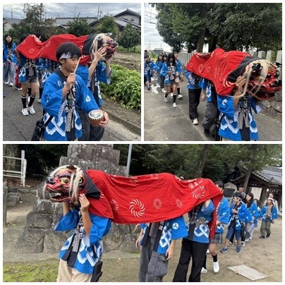 「元気を出してわっしょい」と秋の空に澄み渡る声で、男女にわかれ町内を練り歩きました。