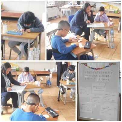 友だちのよいところを見つけ、書いた紙を送り合う、心温まる活動でした。
