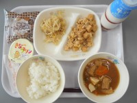 今日の給食は、 ごはん ぎゅうにゅう あつあげのピリからそぼろ きりぼしだいこんとベーコンのいために きのこのぐだくさんみそしる(セレクト)きなこプリン(セレクト)メープルマフィン です。 ...