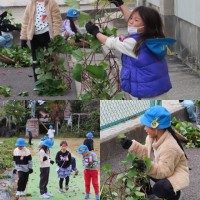 生活科の授業です。 畑で、さつまいもの「つる」をとっていました。 まもなく さつまいものしゅうかくです。 とった「つる」は、このあと「リースづくり」を行うようです。 大きなさつまいもが育っているかな...