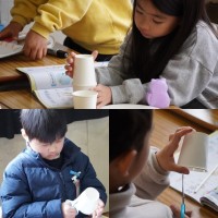生活科で「そとで あそぼう」の工作をしていました。 風車や風輪をつくっていました。 「絵は、くみたてるまえにかいたほうが かきやすいね。」 「羽をまげるときに、よくおるといいよ。」 など、作りながら...