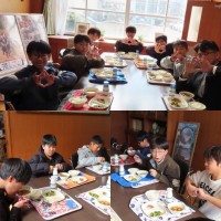 本日は、「6年生の皆さんとの会食」3日目です。 「席決めじゃんけん」でスタートから大盛りあがりです。 アイドルグループの決めポーズでHPの写真を教頭先生に撮っていただきましたが… このポーズは小指...