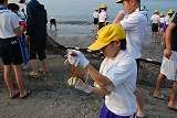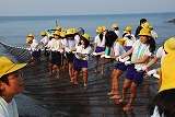 1・2組、3・4組に分かれて両側から網を引っ張りました。網に引っかかった魚をわれ先にと、捕まえている姿が、とても楽しそうでした。
