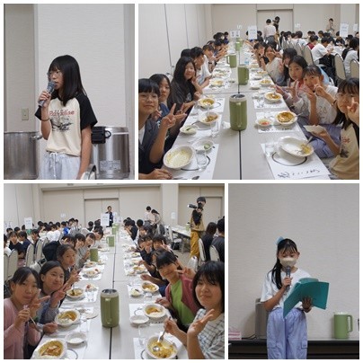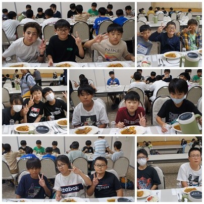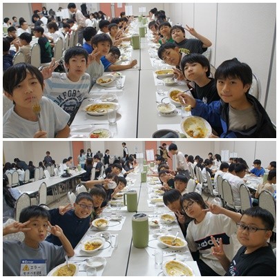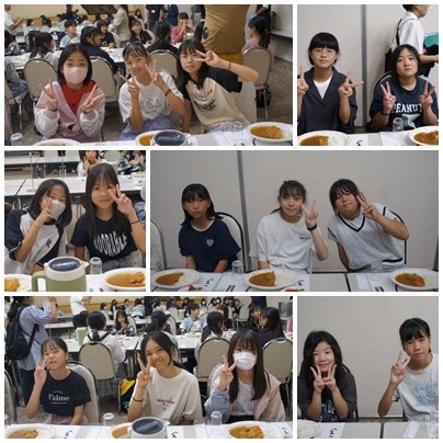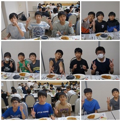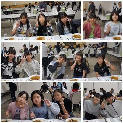 バス分散の後は昼食で全員集合し、カツカレーをたくさん食べました。