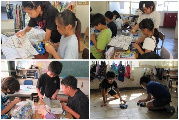 理科「電気のはたらき」の学習が終わり、最後はモーターカーを作ったり改良したり、学習したことを活用して思い思いにやりたいことをやっています。教室のいたるところで友達と聴き合い助け合う姿が見られます。自分の学びも、仲間の学びも大切にする姿が素敵です。