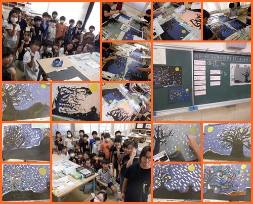 筆を使い分けたり、いろいろな色を混ぜて工夫したり・・・とてもすてきな仕上がりに、帰りの会の振り返りでは、発表した全員が図工のことを挙げていました。