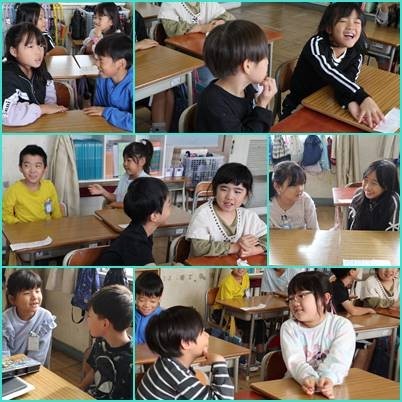 今日は、「宮笑タイム」から1日が始まりました。ペアでじゃんけんをして、質問をしたり、答えたりしながら取り組みました。たくさんの質問をして、友達についていろいろなことを知ることができていました。次の「宮笑タイム」が楽しみですね。