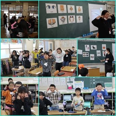 2組の外国語活動では、身体の部分を表す英語やハロウィンに関係する英語を学びました。歌に合わせて踊ったり、ゲームをしたりしながら楽しんでいました。