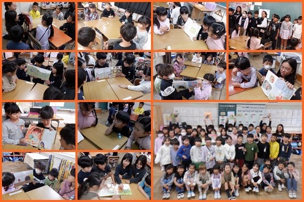 朝の時間に1年生の教室へ絵本の読みきかせにでかけました。それぞれのグループごとに、選んだ本を読みきかせていると、1年生の子たちがとても集中してきいてくれているのが分かりましたね。あちこちで笑顔も見られました。