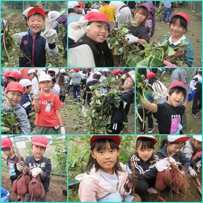 今日は、5月の畝作りから始まったさつまいもの収穫の日でした。朝からどの子もわくわくした様子で「今日は、いも掘りできるかな。」「大きいのとれるといいな。」「ふくろ小さかったらどうしよう。」など楽しみにする児童の声で教室が賑わっていました。
