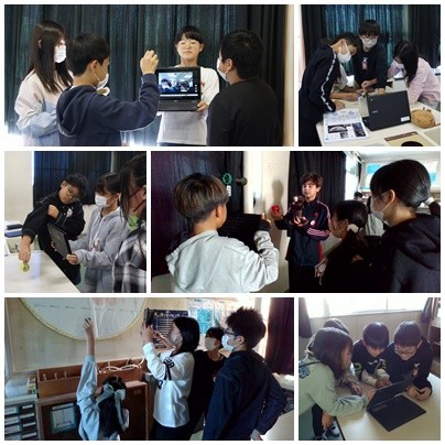 理科の授業では「月と太陽」という単元を学習しています。月の満ち欠けが、なぜ起こるのか、「太陽、月、地球」の位置関係を確かめながら確認しました。学習したことを自分たちで「説明動画」にまとめ、今日出来上がった動画をクラスごとに視聴して、学びを深めました。