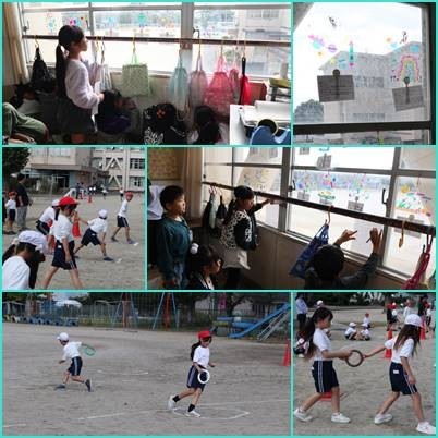 図画工作では、「光のプレゼント」の鑑賞を行いました。出来上がった作品を窓に貼り、光があたったときの作品の様子も見ながら鑑賞しました。「〇〇さんの作品すごーい。」「かわいいなー」などと声をかけながら見る姿が見られました。