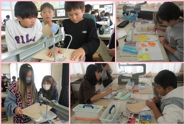 今日も図工で「伝言板」制作に取り組みました。安全に気を付けて糸のこぎりでパーツを切り、絵の具で色付けをしました。色選びや塗り方にもこだわり、一つずつ丁寧に作業を進めています。完成がとても楽しみです!