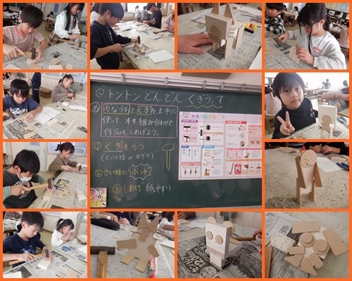 図工は「スペシャル図工デー」ということで、図工室にてくぎ打ちに取り組みました。