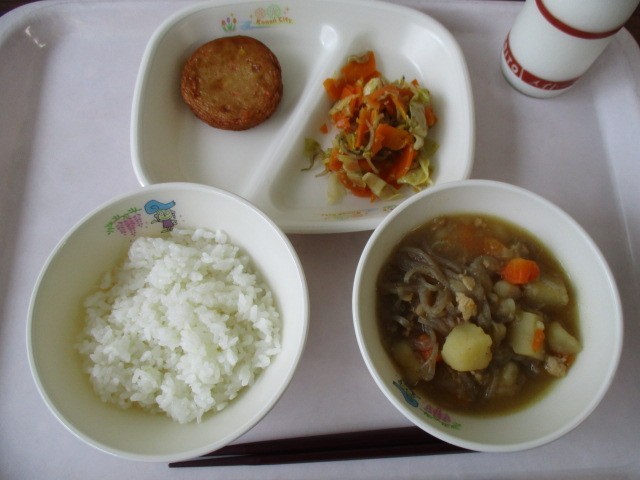 にんじんとちりめんじゃこいためは、6年生家庭科「まかせてね今日の食事」の単元に登場するメニューです。給食はアレンジして教科書のレシピにキャベツを加えました。