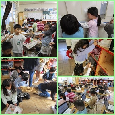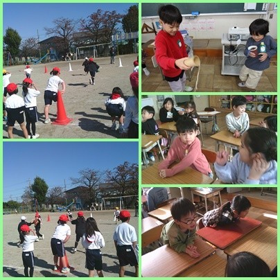 寒さに負けず子どもたちは元気いっぱいです。秋をつかったおもちゃも仕上がってきたので、みんなで遊ぶ計画を立てています。算数では、テープを使っていろいろなものの長さ調べをしました。グループやペアで仲良く活動できることができました。