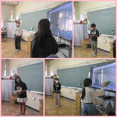外国語の学習では、スピーチ発表を行いました。「自分の町にあったらいいな」と思うオリジナル施設を英語で紹介しましたが、ユーモア溢れるアイデアばかりで、とても楽しい時間になりました。緊張しながらも、最後までしっかり発表する姿が立派でした。みんな、よく頑張りました!