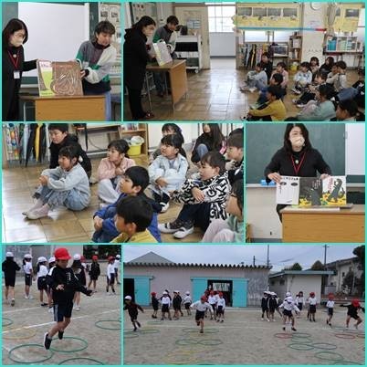 今週はナンジャモンジャデーです。今日は2組で、読み聞かせをしていただきました。子ども達は目を輝かせて物語の世界を楽しんでいました。また、体育では跳び遊びが始まりました。「けんけんぱ」からスタートし、様々な跳び方を試します。