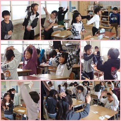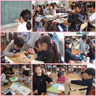 3組では、先週の生活科で行った宮笑課題に引き続き取り組んでいます。おもちゃフェスティバルに向けて何を大切にしたいかを考えながら、班ごとに自分達の力で毎回の計画を立て、おもちゃのバージョンアップやお店作りを行っていきます。今日は、外国語の授業もありました。英語の歌が流れればノリノリで踊り、英単語のゲームはいつも大盛り上がりです。