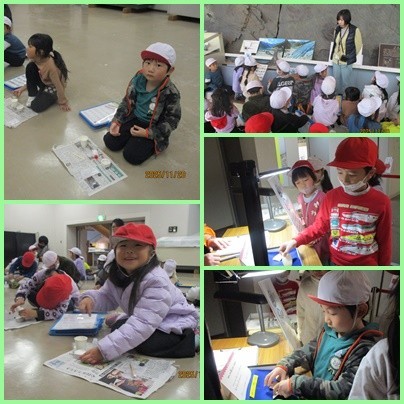 岐阜県博物館では、恐竜のお話・自然展示室の見学・鳥のたまご・化石のレプリカ作りと、盛りだくさんの活動となりました。博物館の先生の話を真剣に聴いて活動する姿には、日ごろから「聴く」にこだわってきた成果を感じるほどでした。
