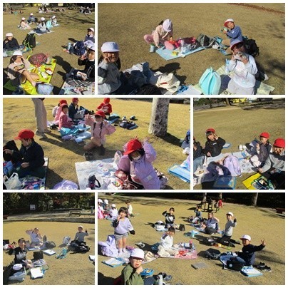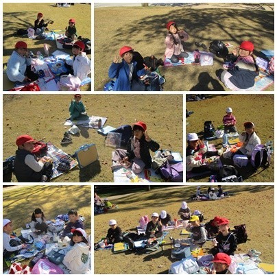 楽しみにしていたお弁当の時間は、お家の人に作ってもらったお弁当を嬉しそうに食べたり、おやつを友達と見せ合いながら楽しそうに話したりしていました。友達とお弁当を食べた楽しい思い出ができてよかったですね。お忙しい中、お弁当のご準備ありがとうございました。