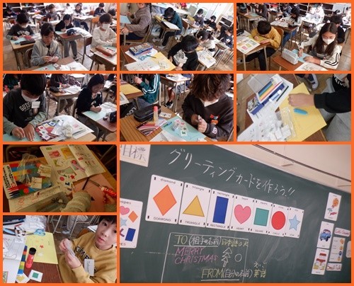 もうすぐクリスマスシーズンということで、英語の時間にグリーティングカード作りに取り組みました。英語を使って上手にできたかな?