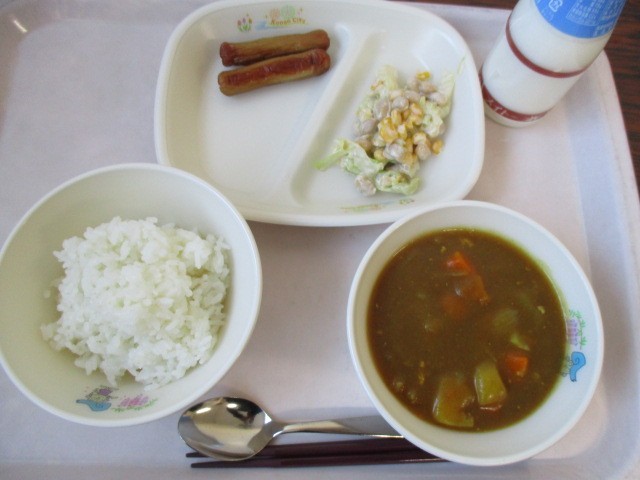 給食のカレーに一番たくさん入っている食材は、玉ねぎです。大量の玉ねぎを煮込んで作るので、うま味が増しておいしくなります。隠し味におろしりんごも入っています。