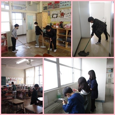 掃除の時間には、みんなが一生懸命モップで床を磨き、話さず静かに集中して取り組む姿が見られました。高学年らしい姿がとても素敵でした。