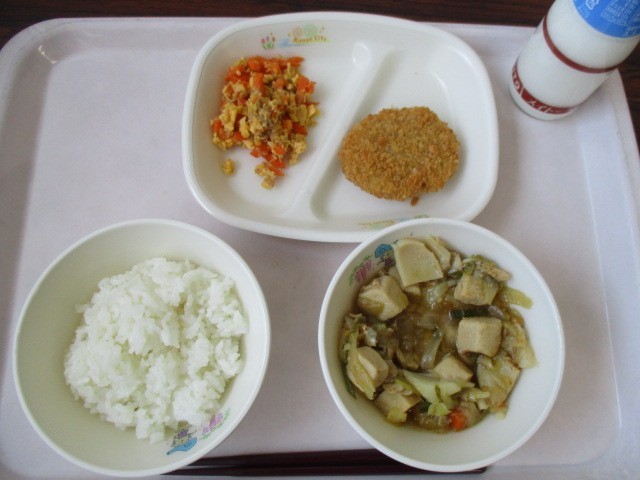豆腐を凍らせて乾燥させたのが高野豆腐です。大豆からできる食べ物は生揚げ、おから、きなこ、みそなどたくさんあります。献立表から大豆製品を探してみましょう。