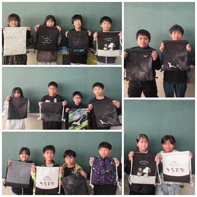 昨日の家庭科の授業で、2組がナップザック作りをしました。口あきどまりの部分が難しく、苦戦しましたが、ナップザックを完成させることができました。