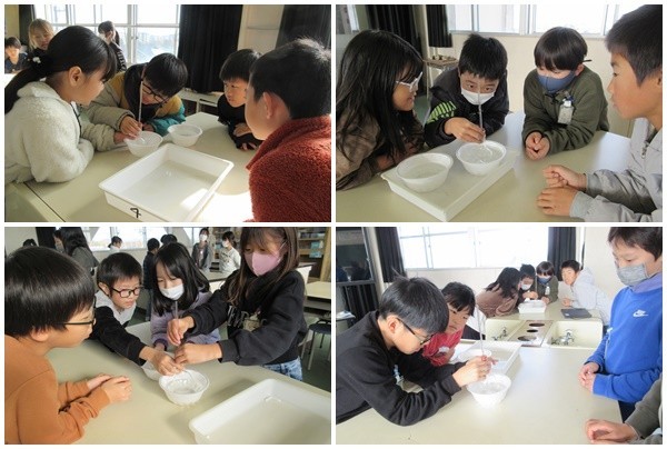 理科は「ものの温度と体積」」の学習に入り、この単元以降、4年生理科も理科室での実験が多くなります。理科室の使い方をしっかり学んでから、初めての実験をしました。実験中は椅子に座らないこと、実験が終わったら実験台はきれいに水ぶきすることなど、学んだことをみんなで意識することができましたね!