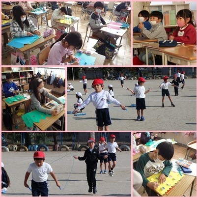 本日、縄跳びを持ち帰りました。「家で駆け足跳びの練習をしたいな。」と話している子もいました。家でも様々な技に挑戦してくれたらと思います。(縄跳びは、月曜日にまた持ってきてください。)