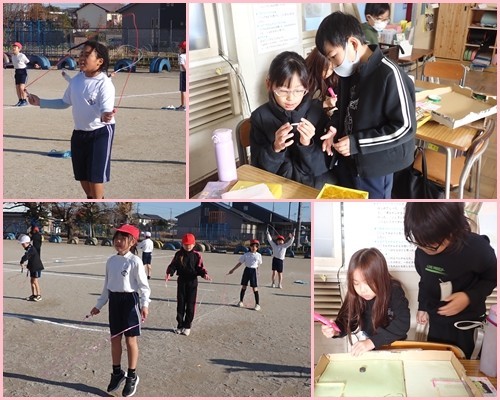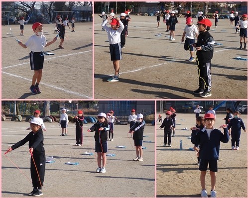 また、体育ではなわとびに取り組んでいます。今日は、両足前跳びやかけ足跳び、片足跳びの練習をしました。寒さが深まる中で、しっかりと動いて体を温めています。