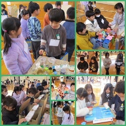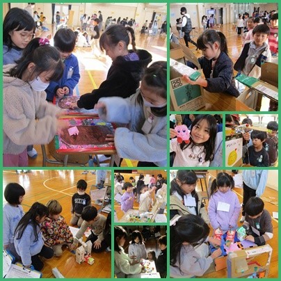 2年生がおもちゃフェスティバルを開いてくれました!しゃてきやクレーンゲーム、わなげなど、手作りのおもちゃがたくさんありました。どのおもちゃも1年生が楽しめるように工夫してあって、面白いおもちゃばかりでしたね。とても楽しい時間になりました。
