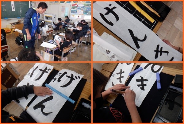本日、習字道具と書き初めの手本を持ち帰ります。お手入れをしっかりとして、家でも書き初めの練習に取り組みましょう。