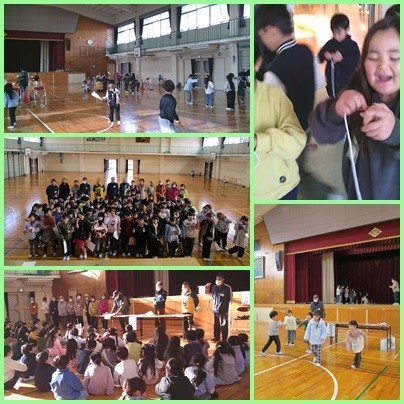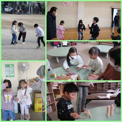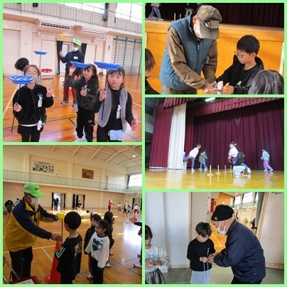きょうは、ボランティアさんに「むかしからつたわるあそび」を教えてもらいました。ボランティアさんのおかげで、子どもたちは、とっても楽しく遊ぶことができました。