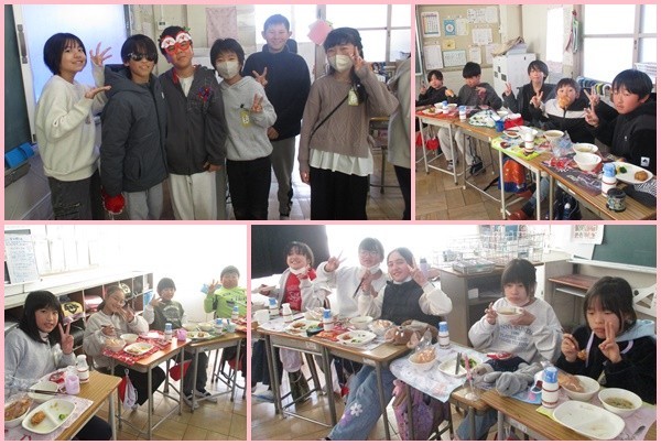 給食は、教室で輪になって食べました。いつもの給食が、何倍も美味しく感じられるひとときでした。