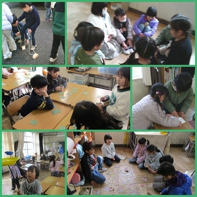 12月にボランティアさんに教えていただいた昔遊びを、今度は体験した子達が先生となって昔遊びを教え合いました。やったことを思い出しながら、やり方やコツを友達に一生懸命伝えていました。みんな夢中になって楽しそうに遊んでいました。次は、また違う昔遊びをします。楽しみですね。
